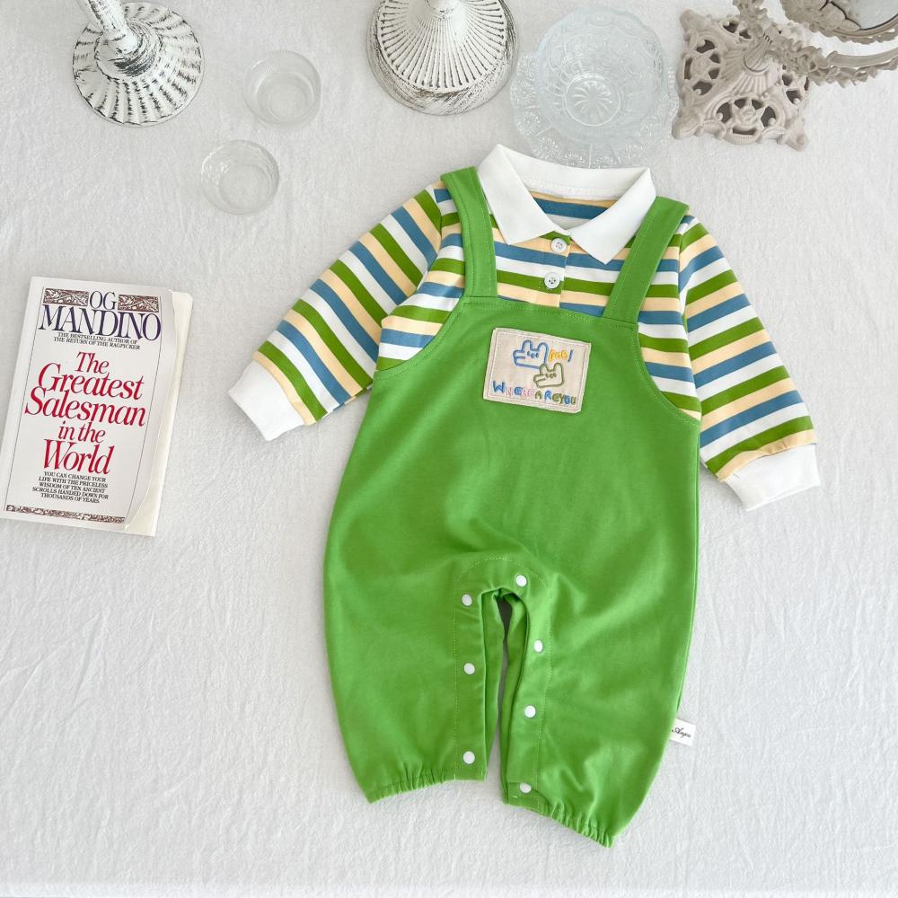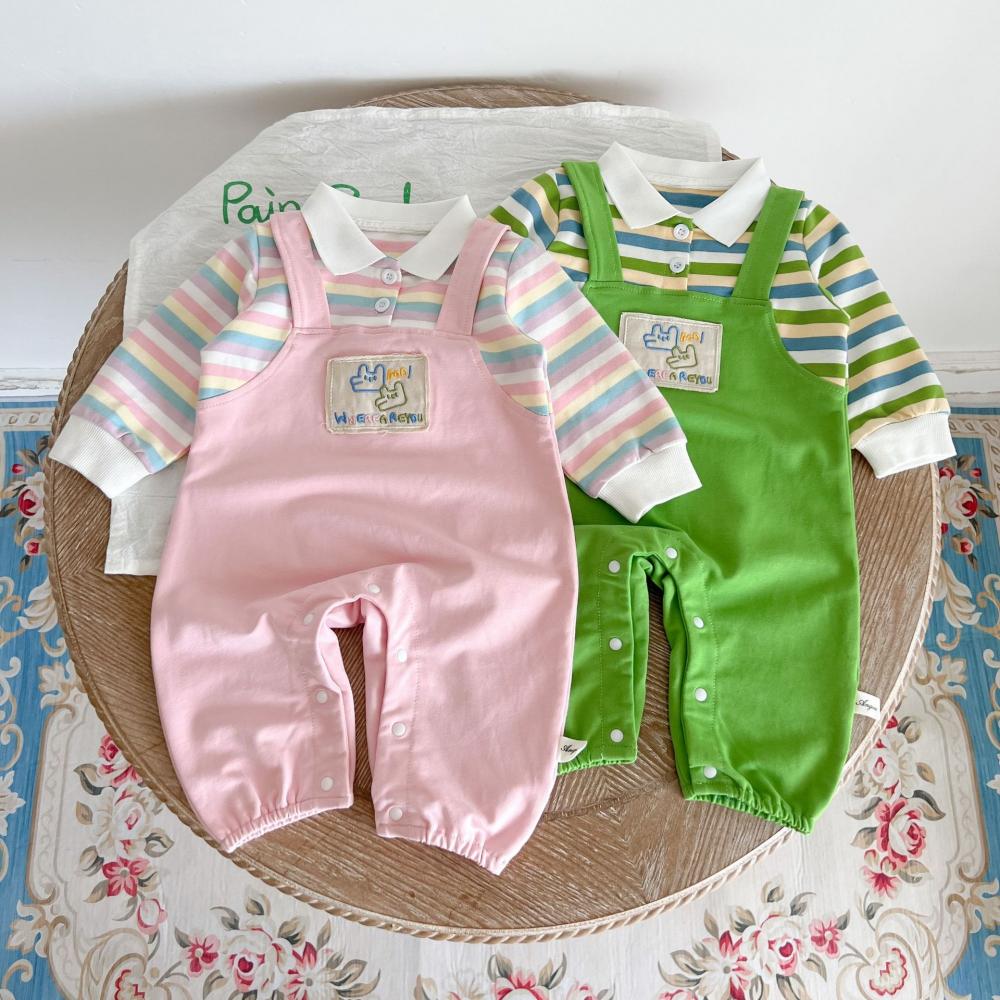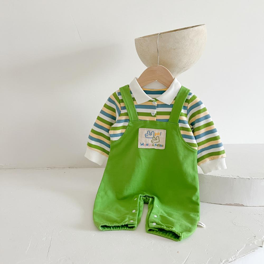 Unisex Baby Stripe Fake Two-piece Overalls Wholesale Baby Clothes