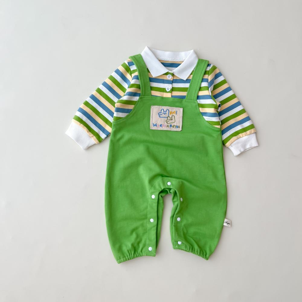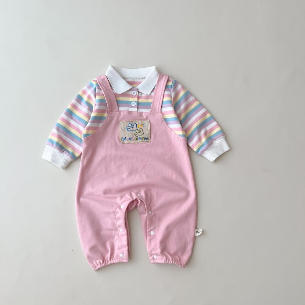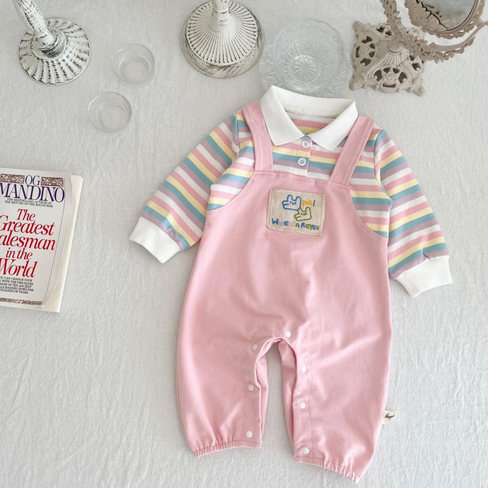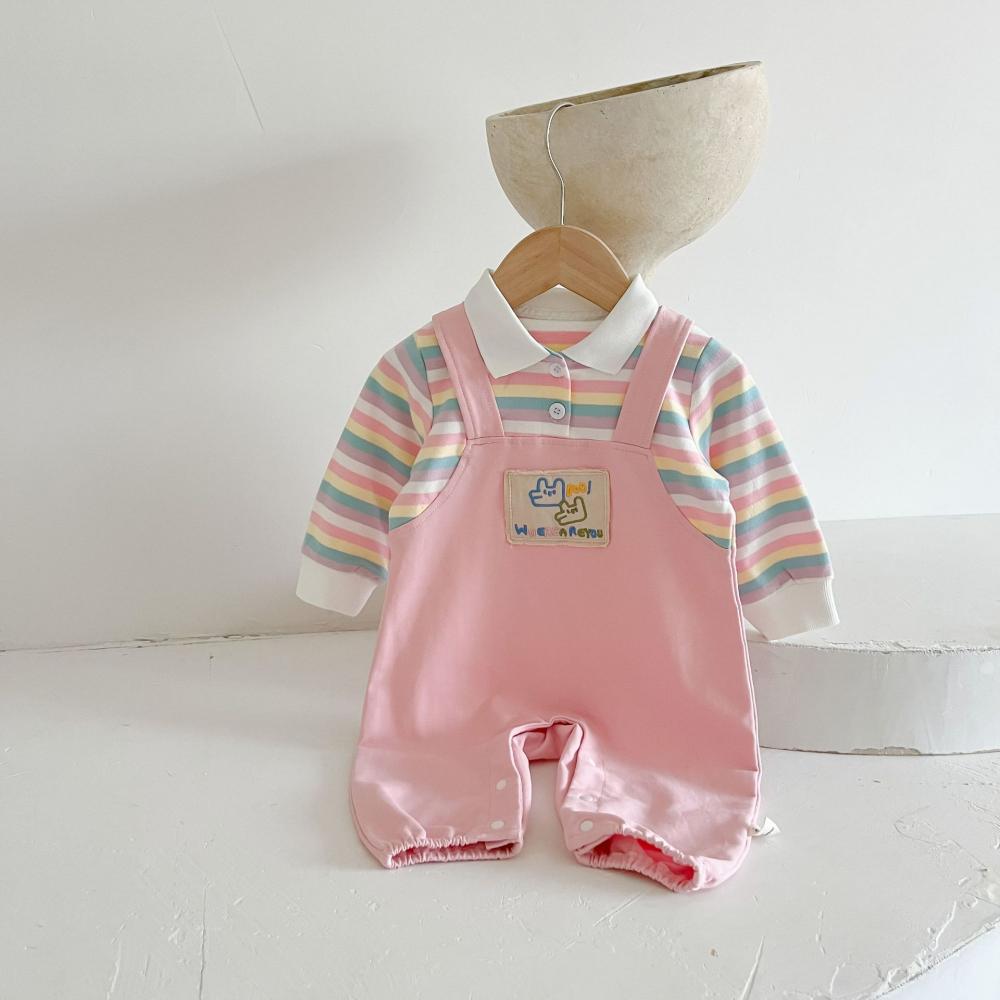 Unisex Baby Stripe Fake Two-piece Overalls Wholesale Baby Clothes