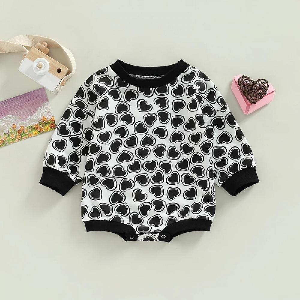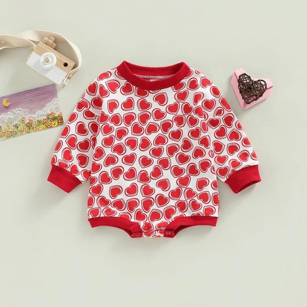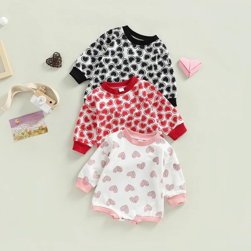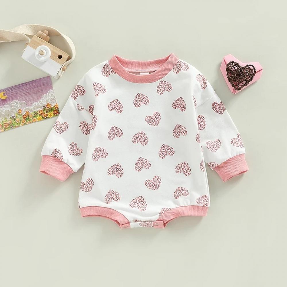 Valentine's Day Autumn Baby Girls Heart Print Romper Wholesale