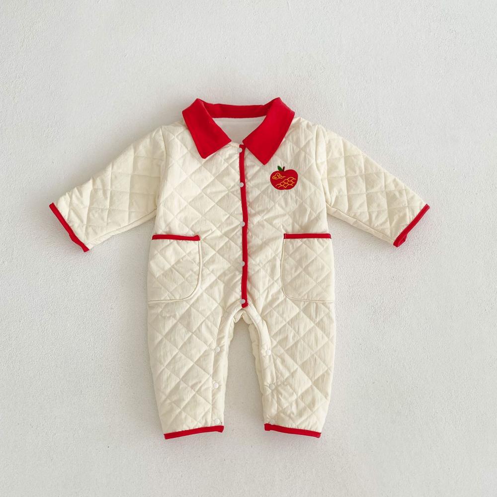 Winter Baby Girls Brushed Warm Long-sleeve Jumpsuit Wholesale