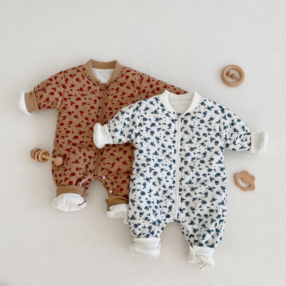 Winter Baby Quilted Warm Floral Romper Wholesale Baby Clothes