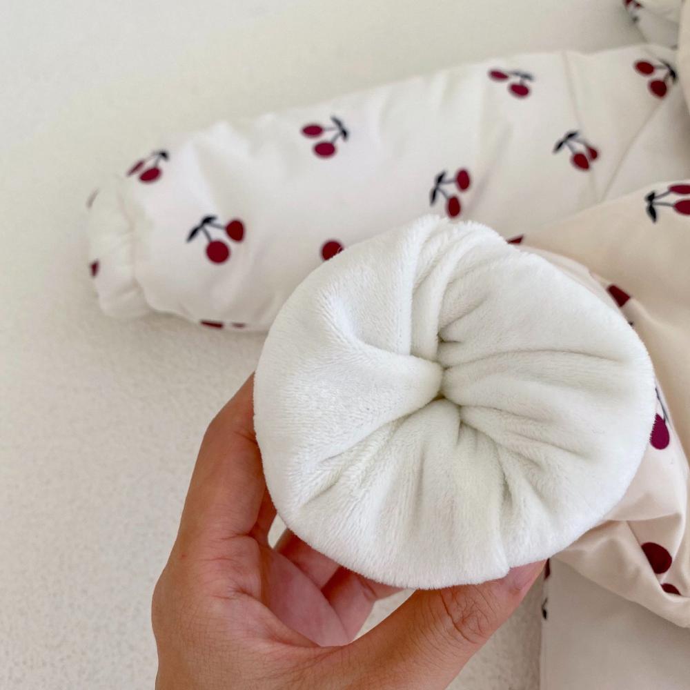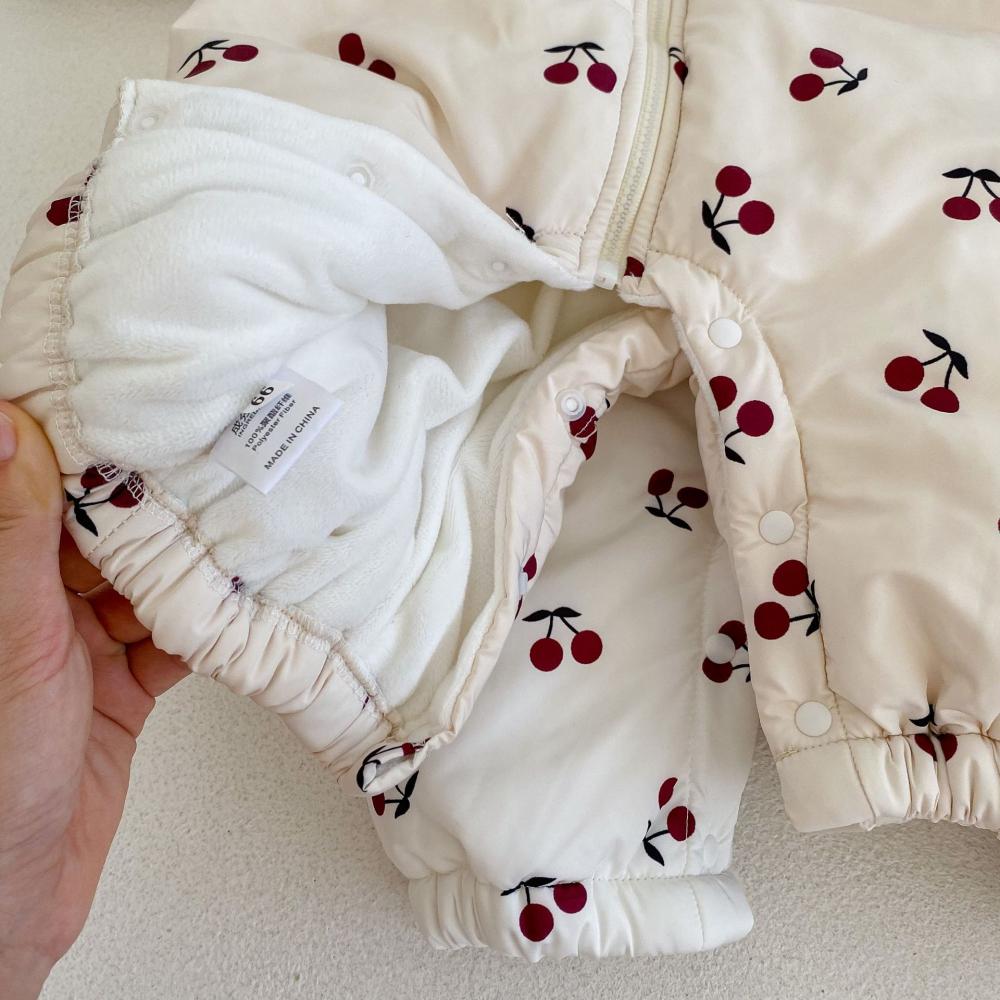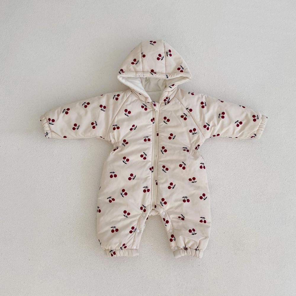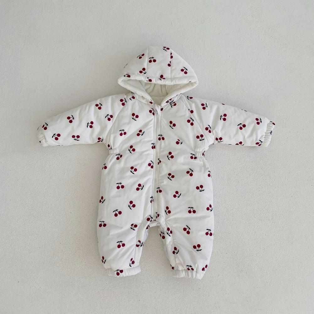 Winter Brushed and Thicken Cherry Print Quilted Hooded Romper Wholesale Baby Clothes